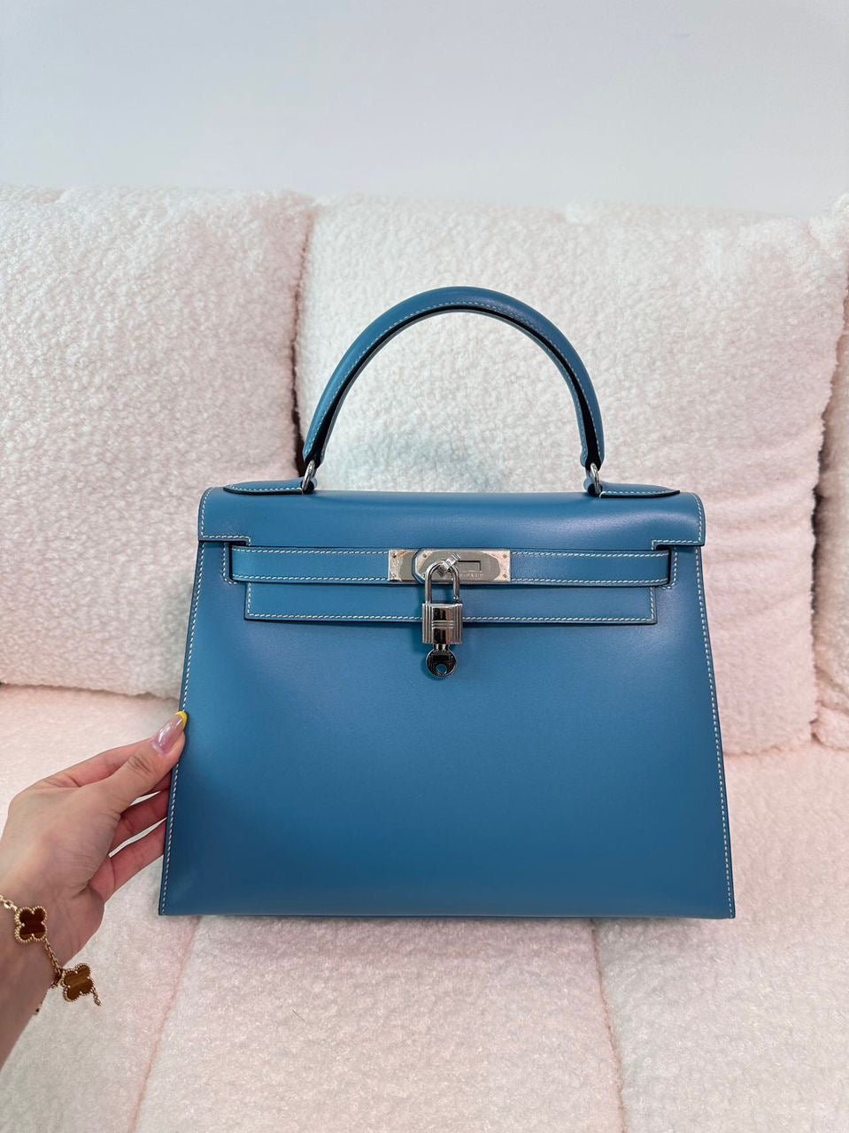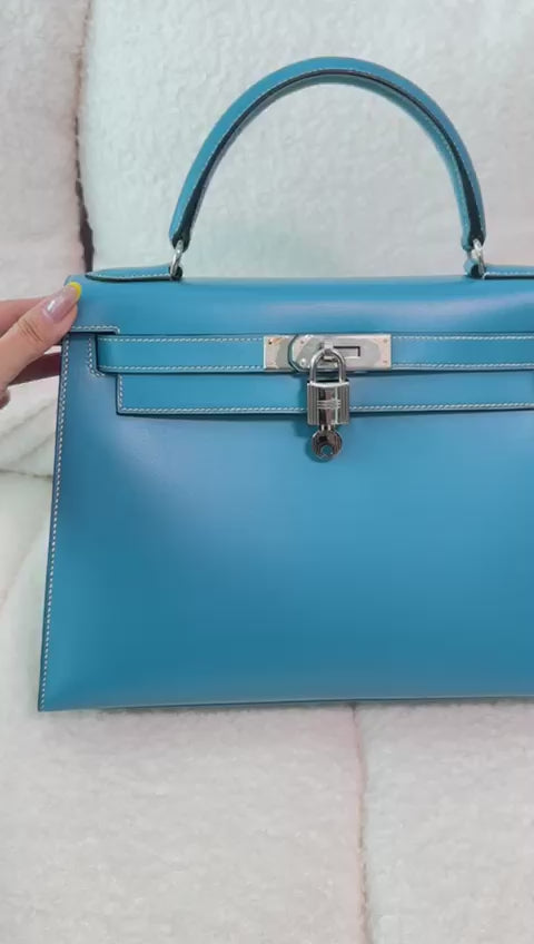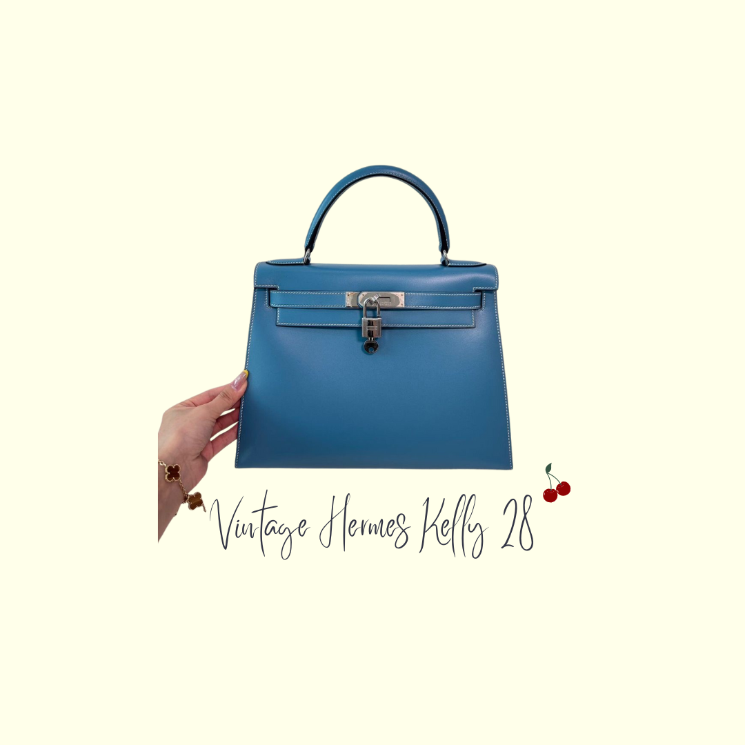 Super rare! Vintage Hermes Kelly 28 Sellier in Blue Jean box leather palladium hardware