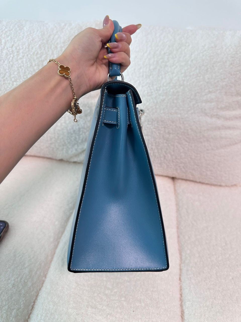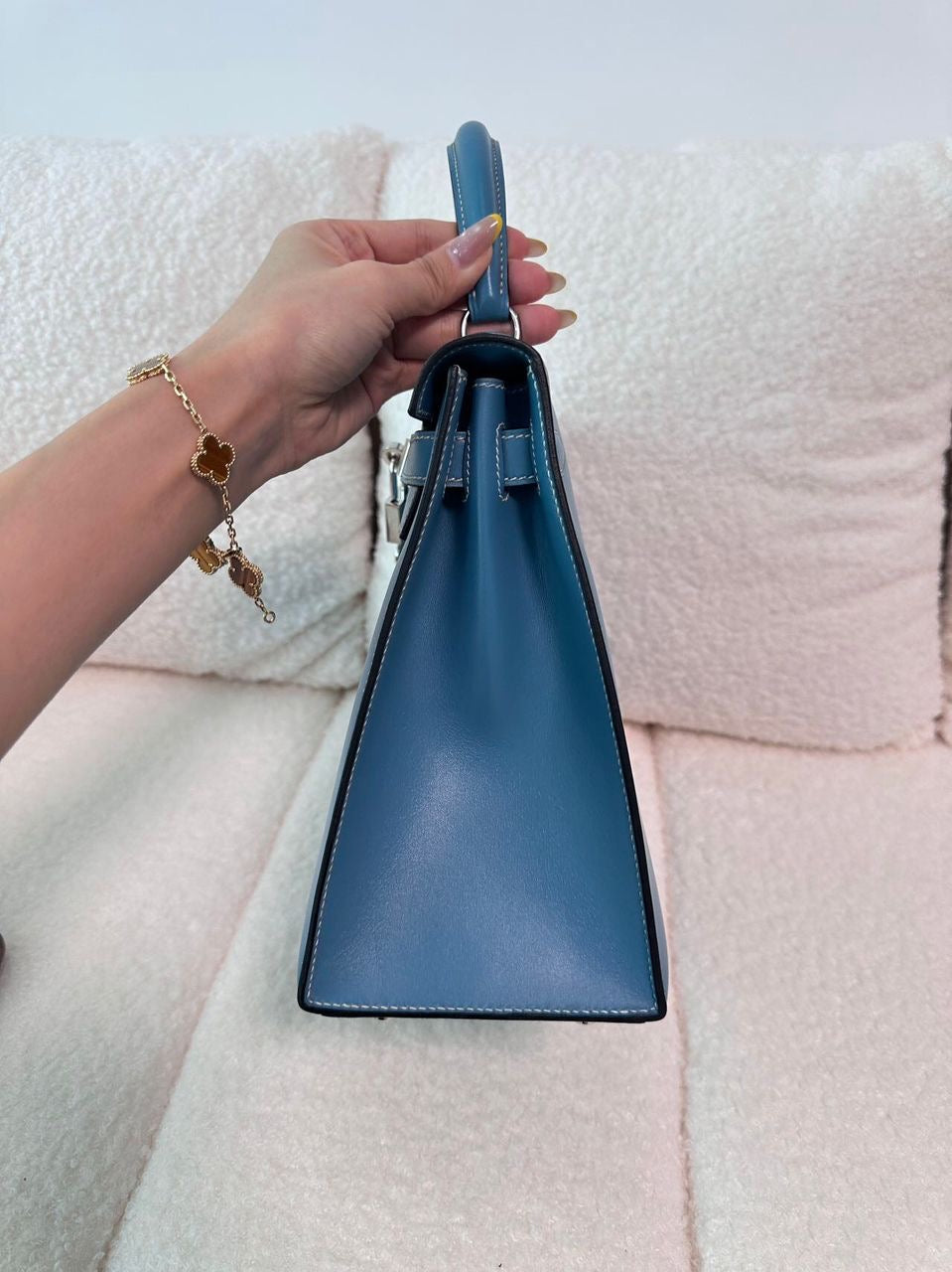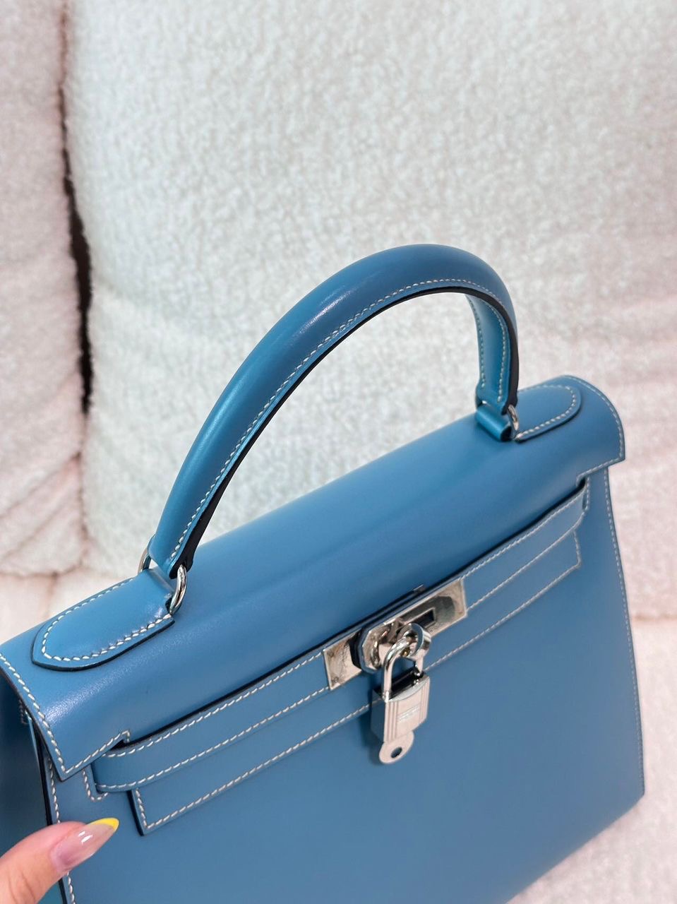 Super rare! Vintage Hermes Kelly 28 Sellier in Blue Jean box leather palladium hardware